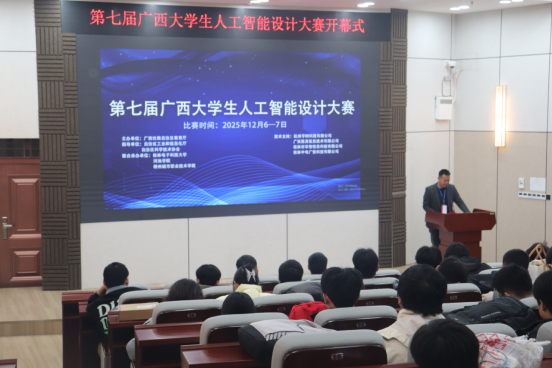 开幕式上,河池学院大数据与计算机学院副院长(主持工作)梁志勋致欢迎辞,介绍了学校在“新工科”建设及物联网、人工智能领域的成果。裁判员代表闭吕庆教授与参赛选手代表梁耀月同学分别宣誓,恪守竞赛规则与体育精神。